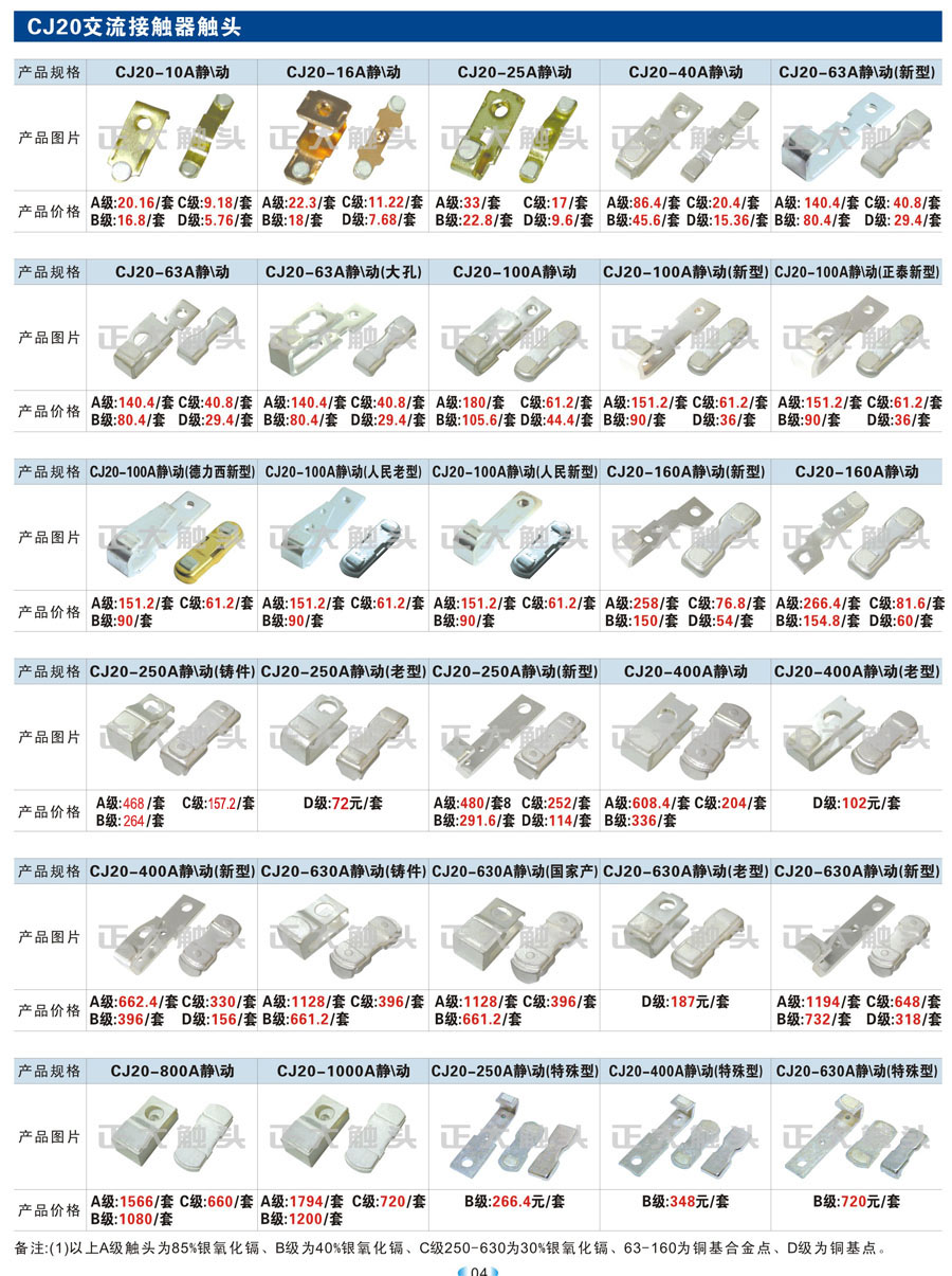 KT12、LK1、KTJ5、LK18、LK17、THQ1、TQKT凸轮控制器系列触头、CJT1交流接触器触头