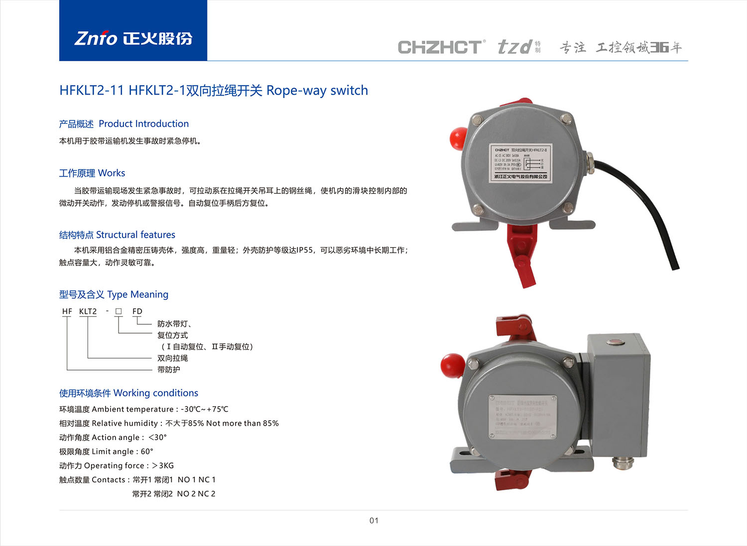 HFKLT2双向拉绳开关 _拉绳开关_行程/微动/跑偏/拉绳/超速_工业控制与保护_产品中心_huatihui电气股份有限公司