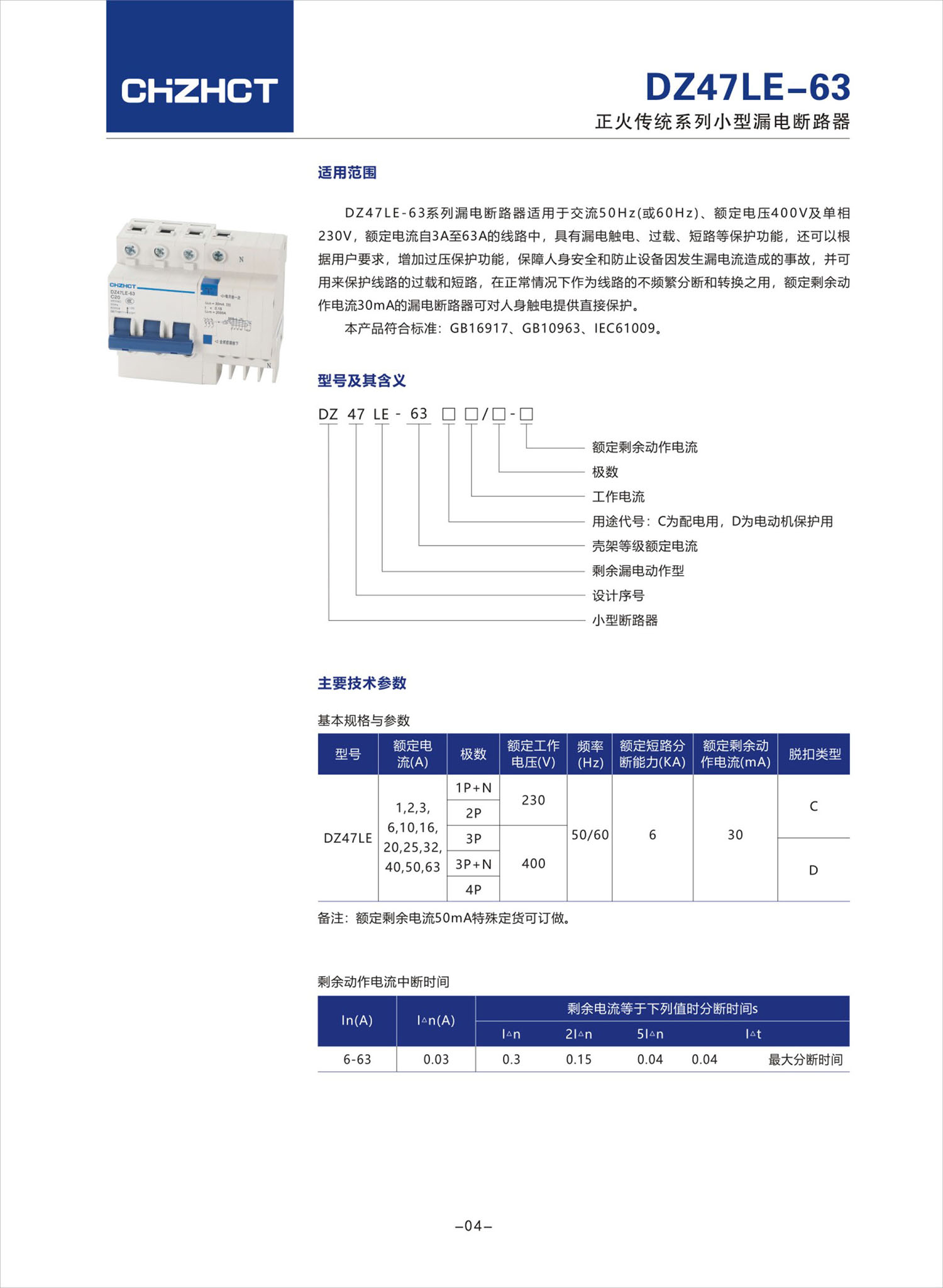 DZ47LE-63 小型漏电断路器_漏电小型断路器_终端电器_产品中心_huatihui电气股份有限公司