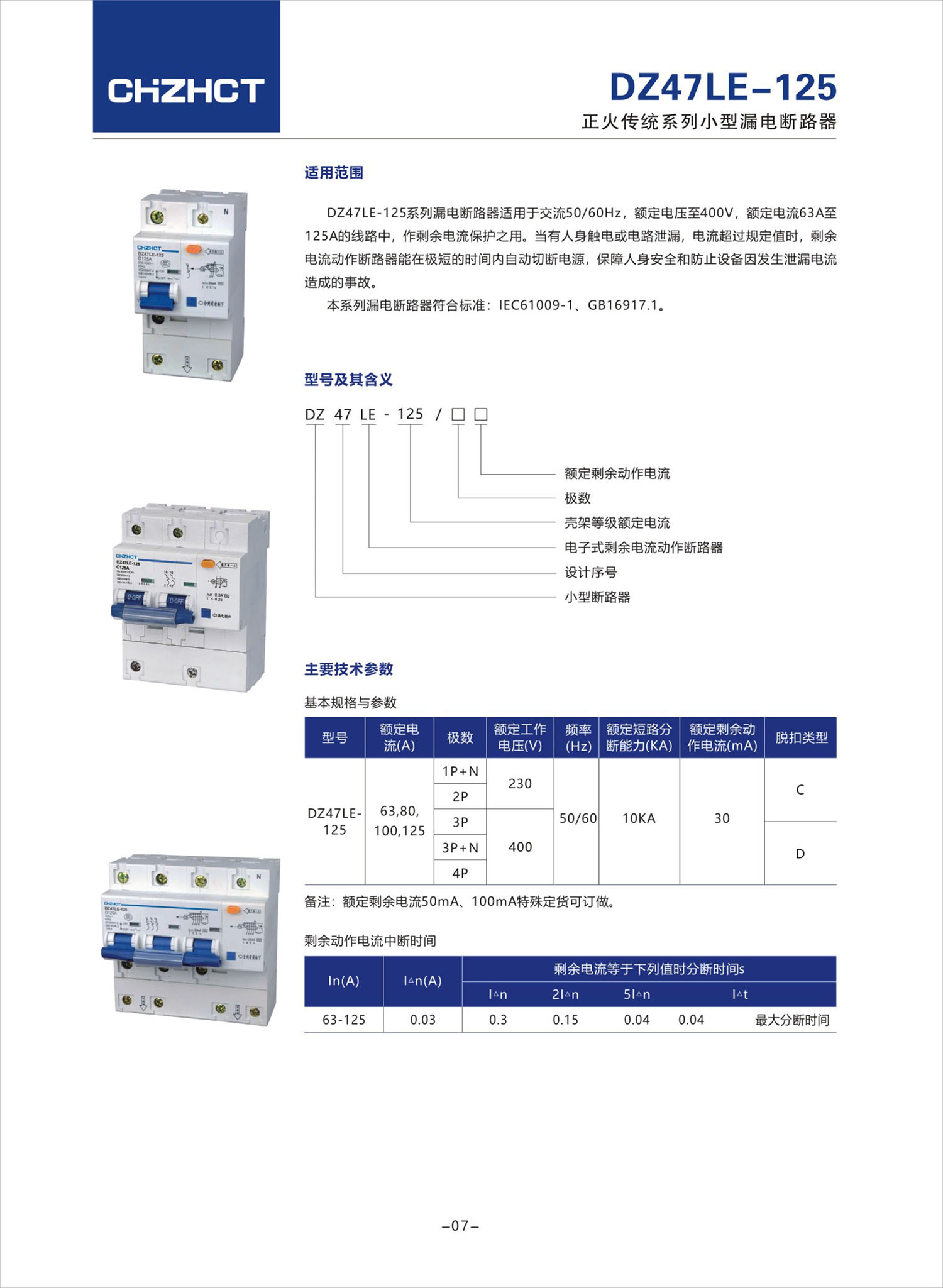 DZ47LE-125小型漏电断路器_漏电小型断路器_终端电器_产品中心_huatihui电气股份有限公司
