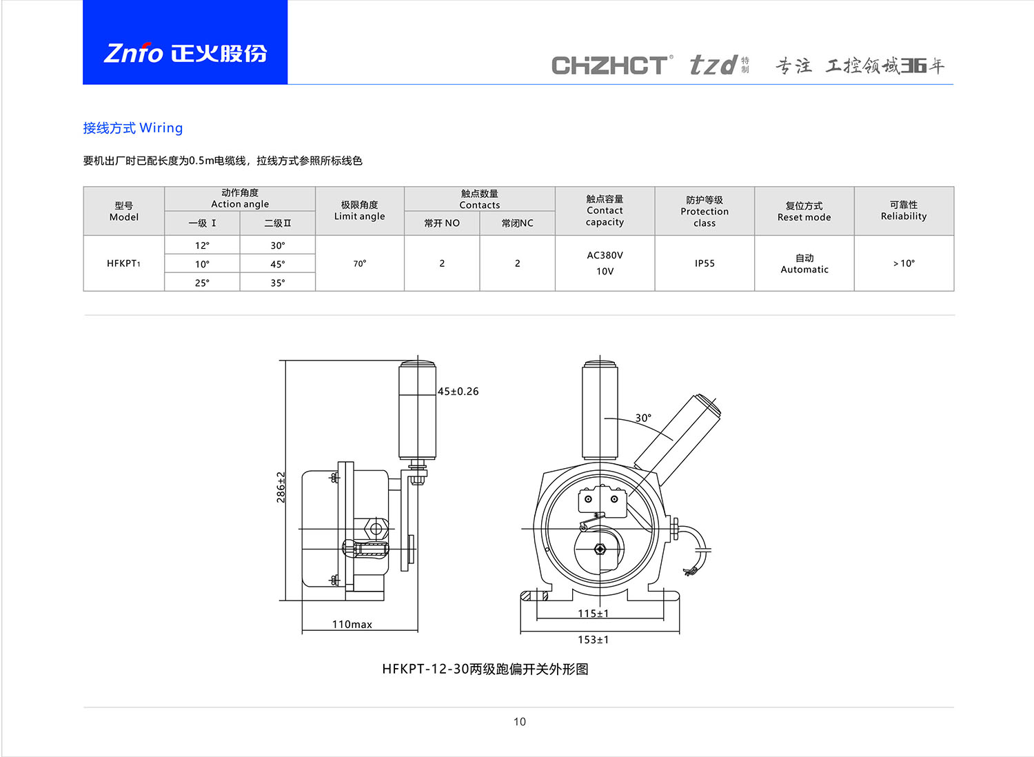 HFKPT1-12-30两级跑偏开关 产品说明书