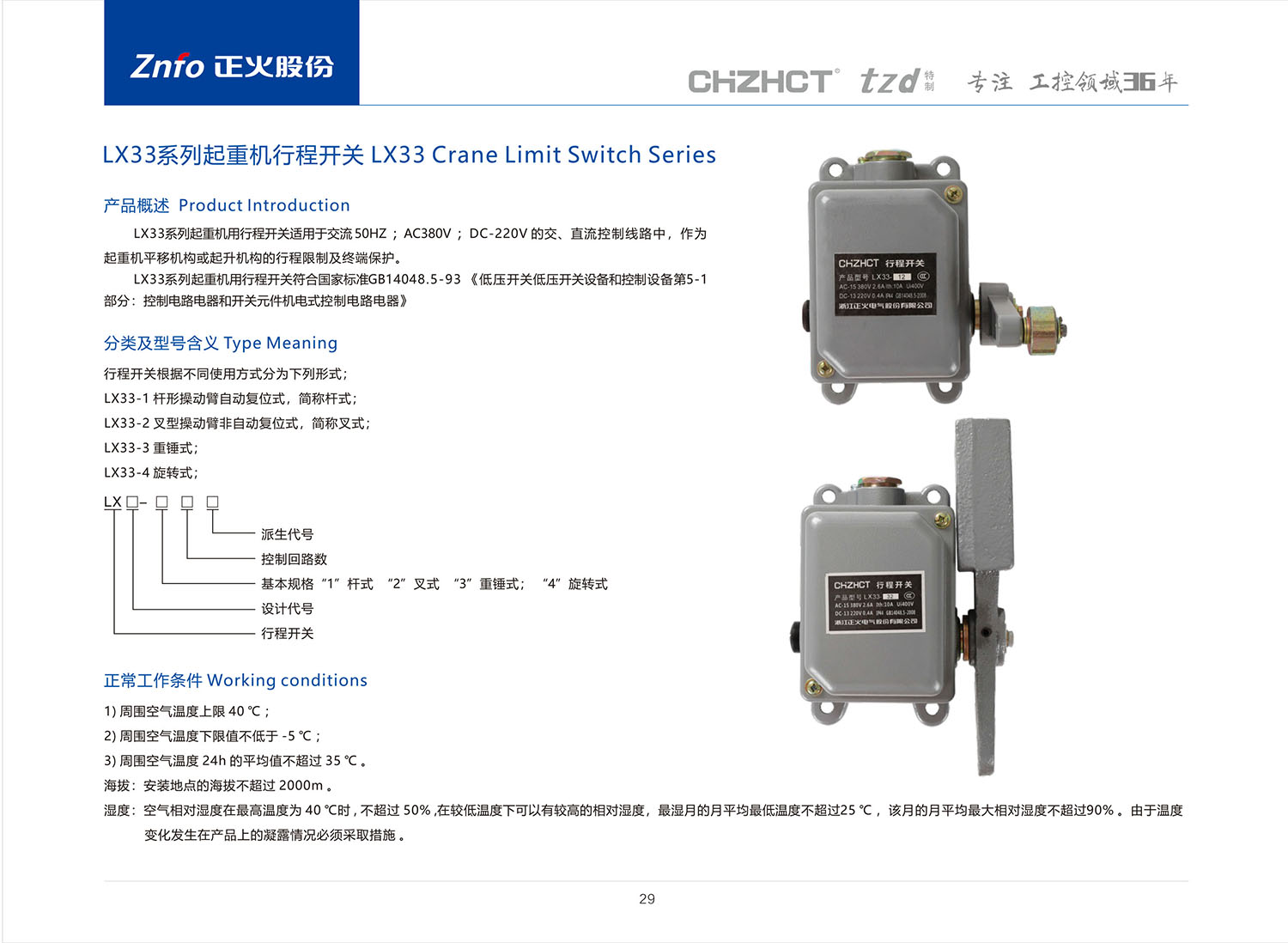LX33系列起重机行程开关_行程/限位开关_行程/微动/跑偏/拉绳/超速_工业控制与保护_产品中心_huatihui电气股份有限公司