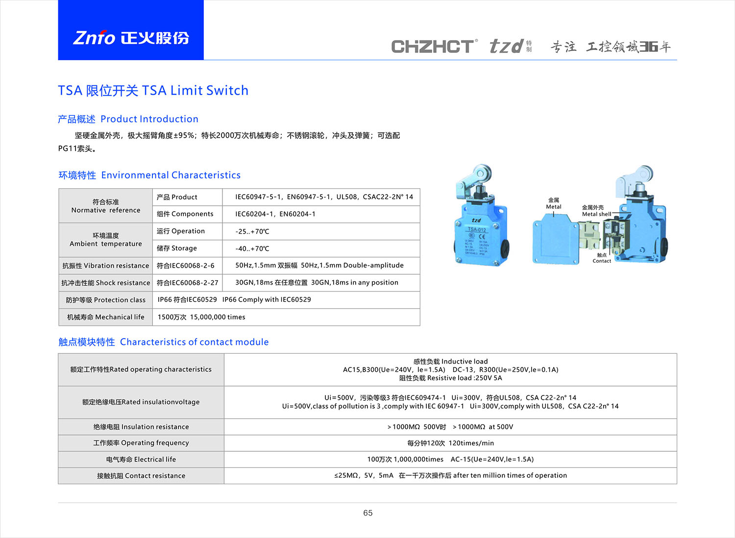 TSA 限位开关 _行程/限位开关_行程/微动/跑偏/拉绳/超速_工业控制与保护_产品中心_huatihui电气股份有限公司