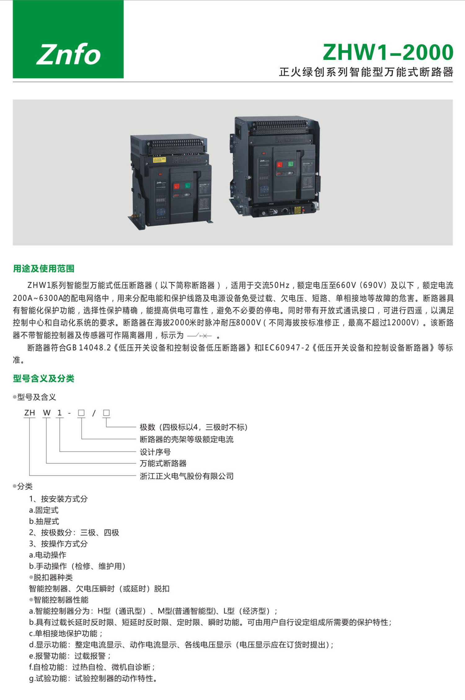 ZHW1-2000系列智能型万能式断路器产品说明书