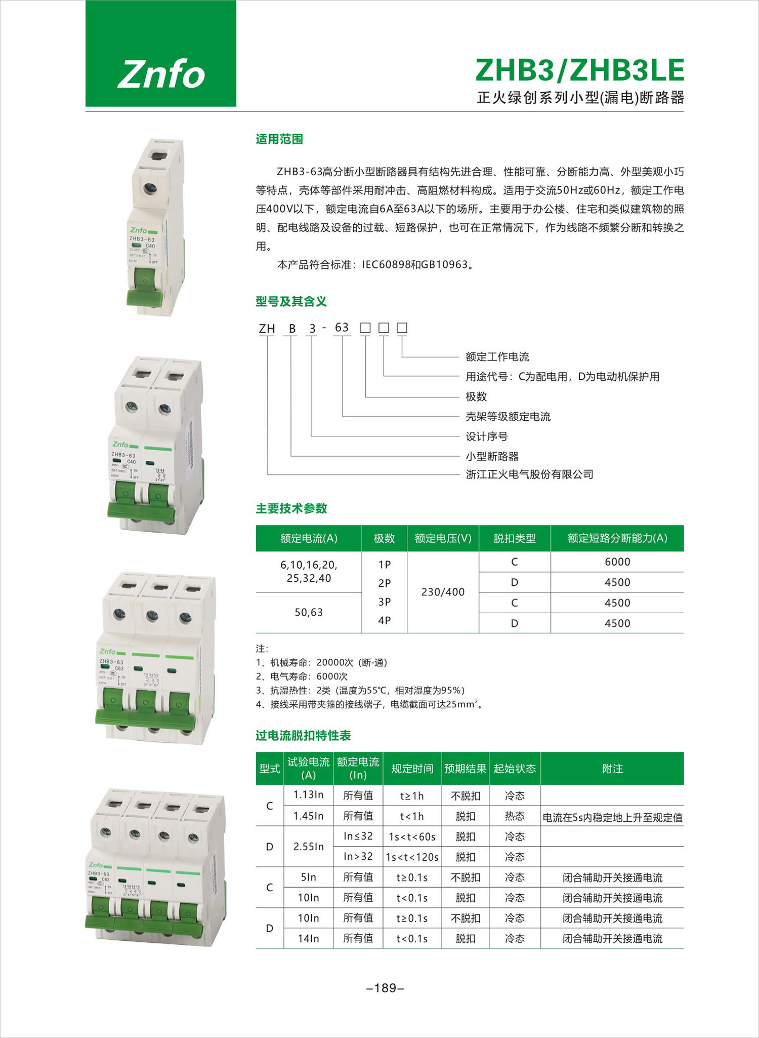 ZHB3/ZHB3LE系列小型(漏电)断路器产品说明书